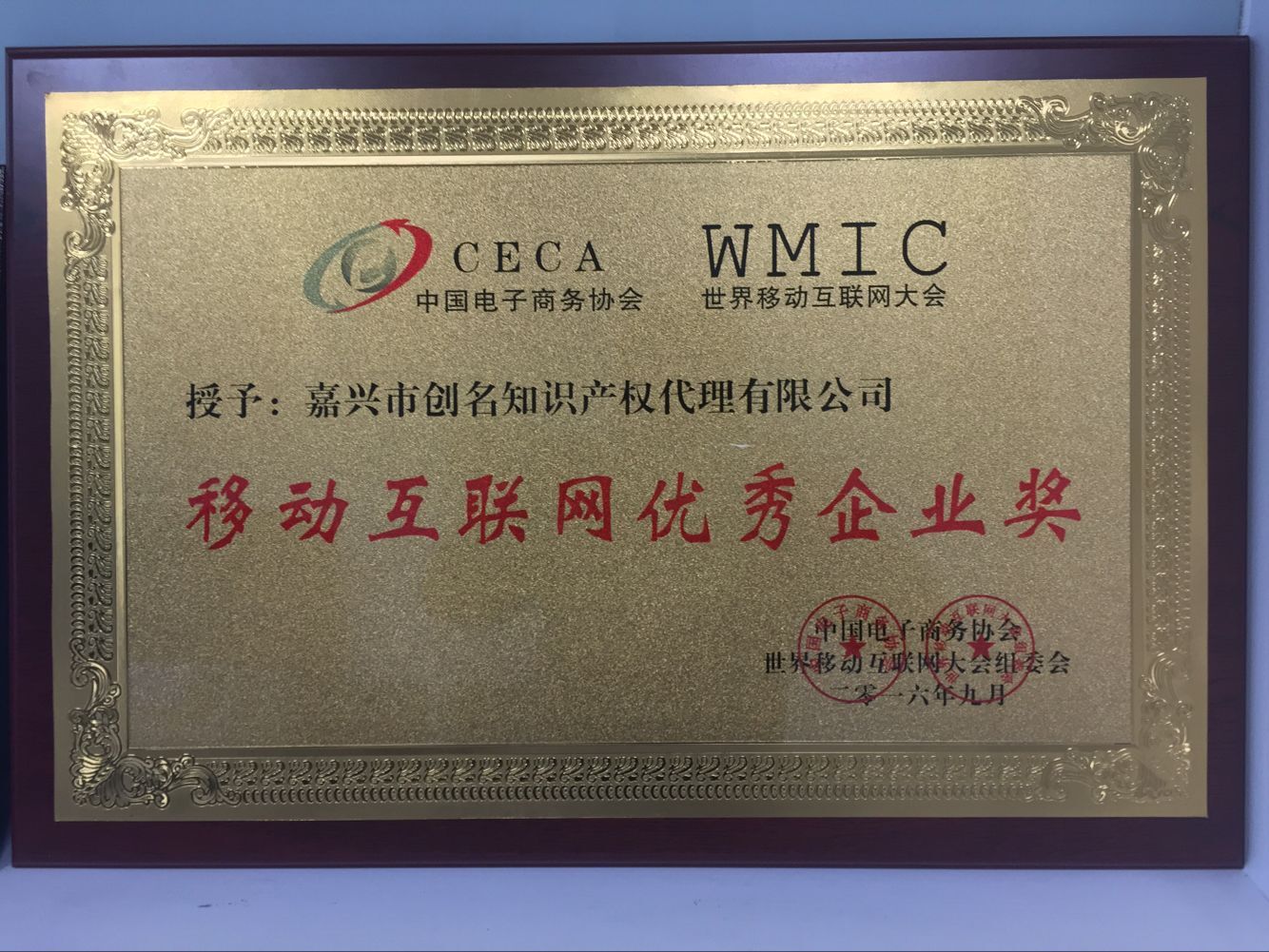 [10-09]熱烈祝賀創名知識產權榮獲WMIC世界移動互聯網大會優秀企業獎